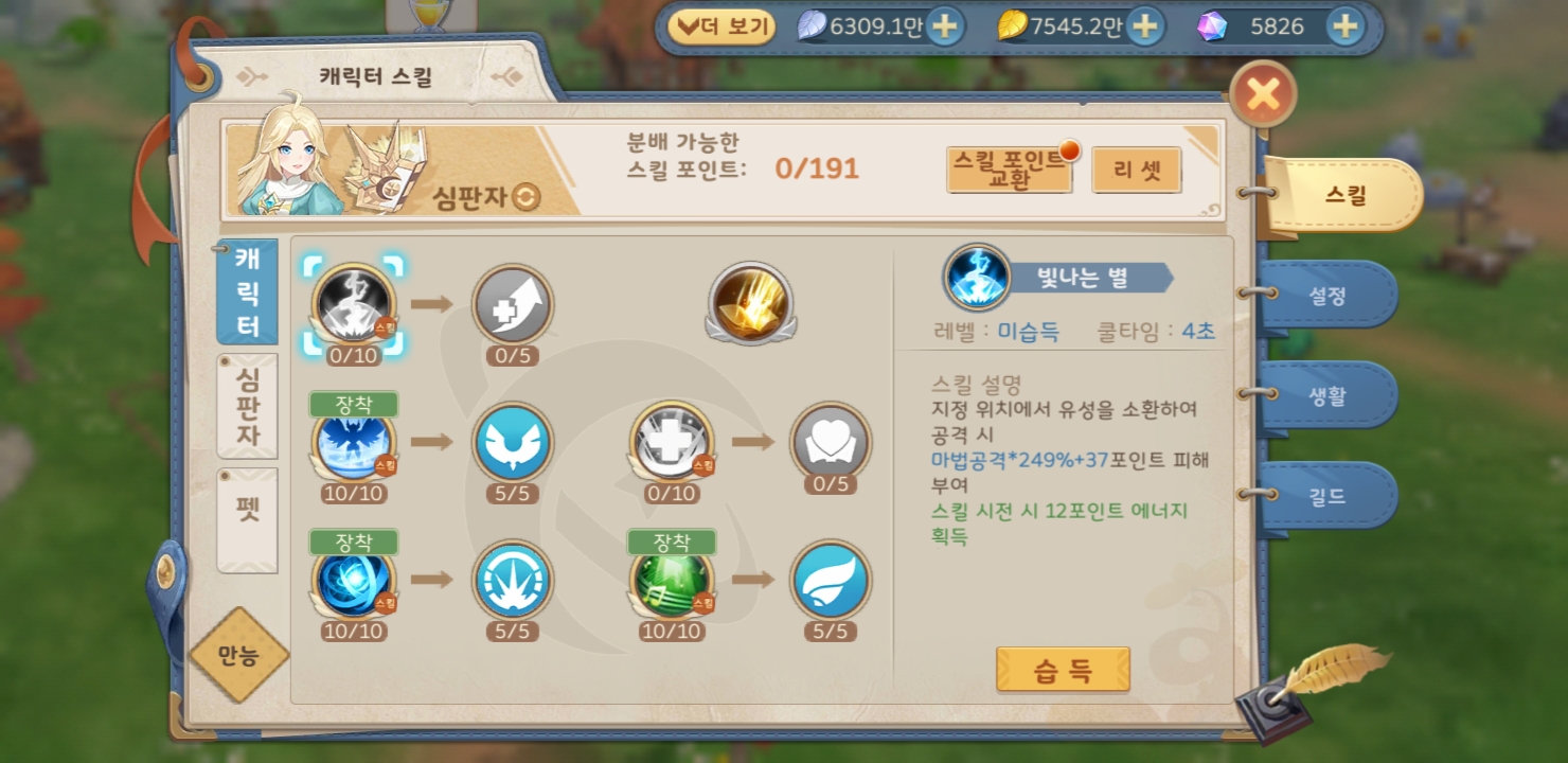 남는 잉여 경험치는 스킬포인트로 전환한다.