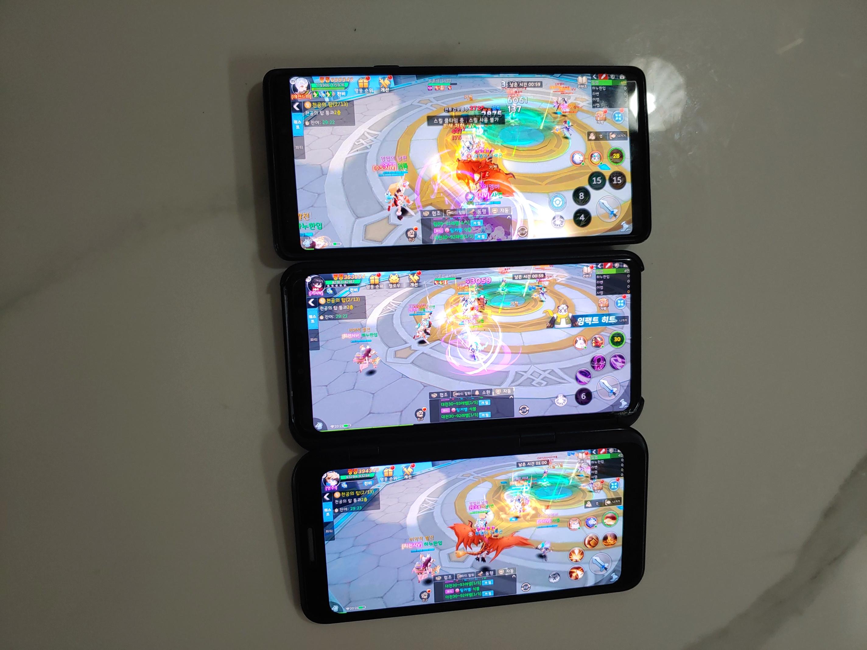 LG V50 폰(보조액정)과 노트9로 게임을 동시에 3개를 돌리고 있다.