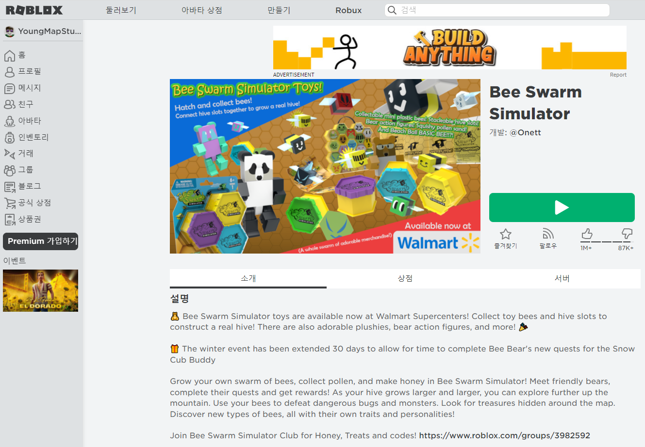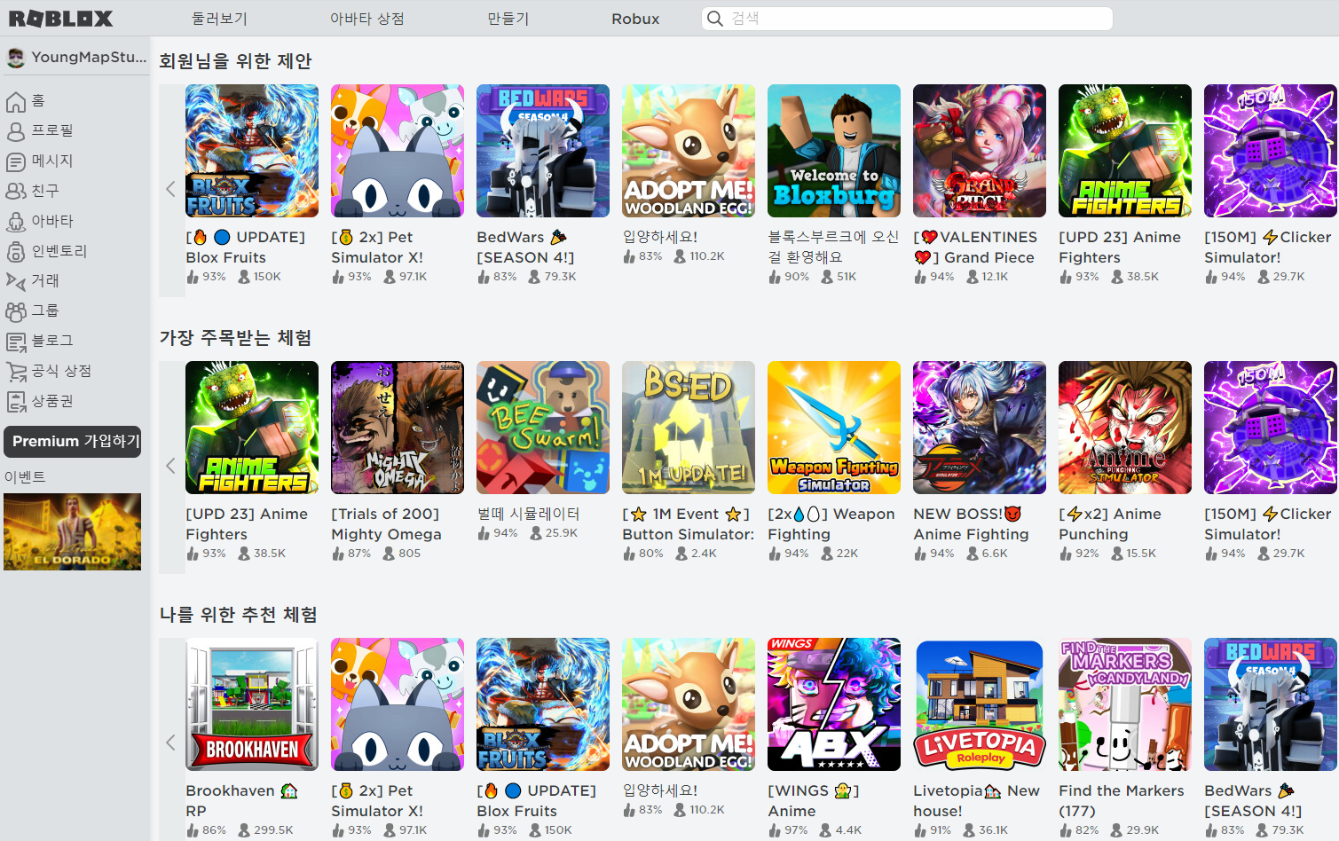 게임을 하는 것을 로블록스에서는 체험이라고 한다.