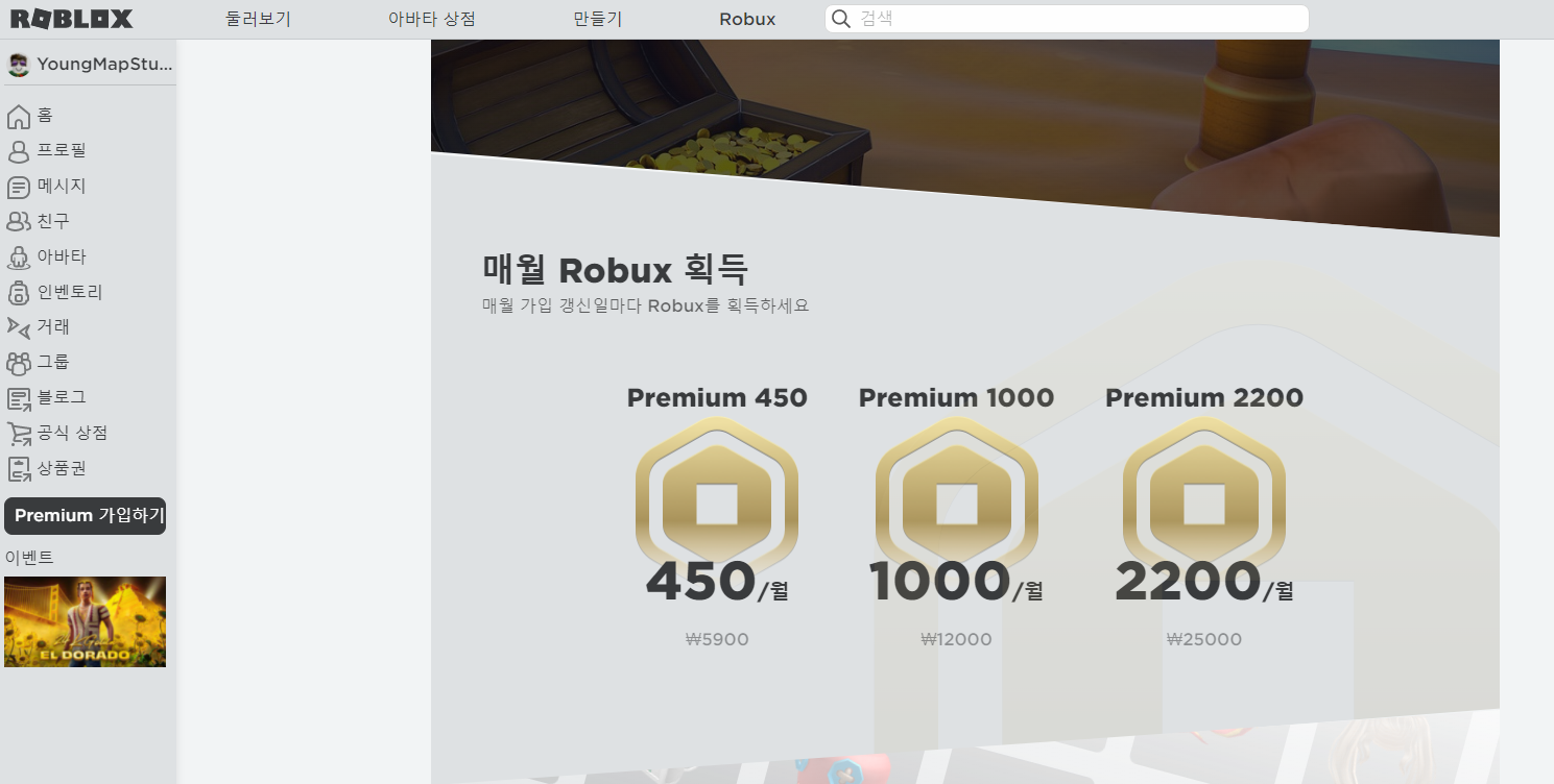 프리미엄 회원은 매달 로블록스의 재화인 로벅스를 얻게 된다.