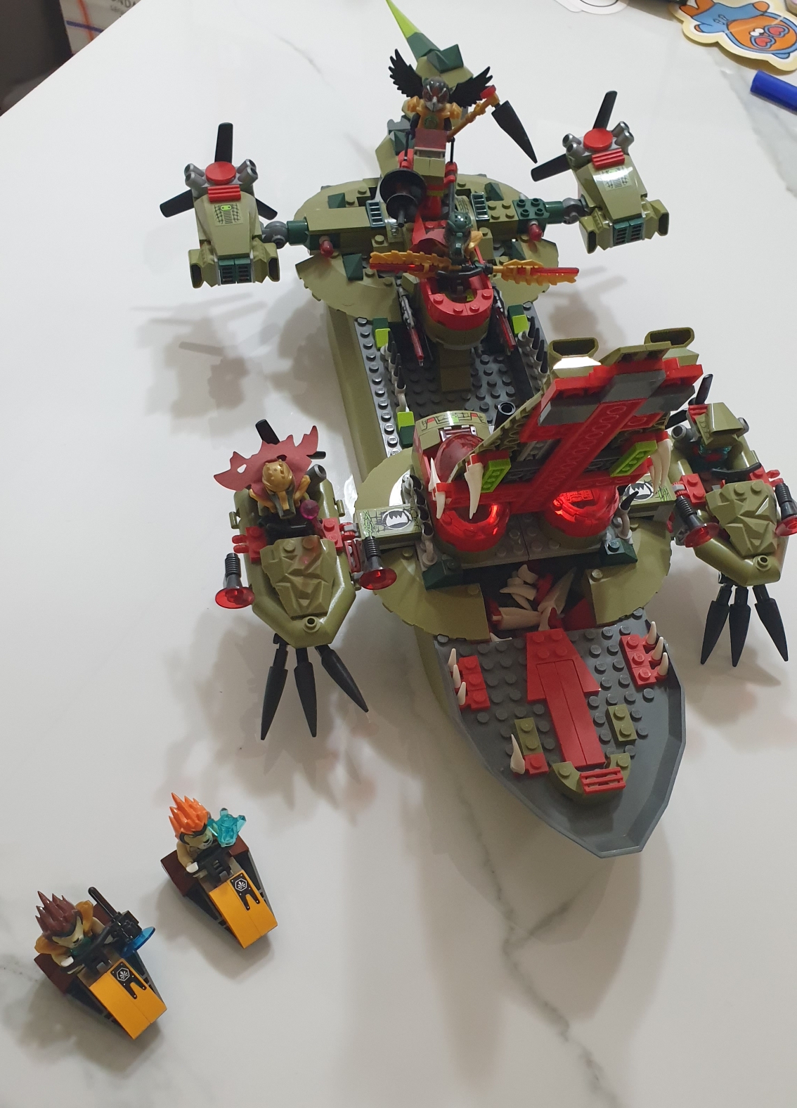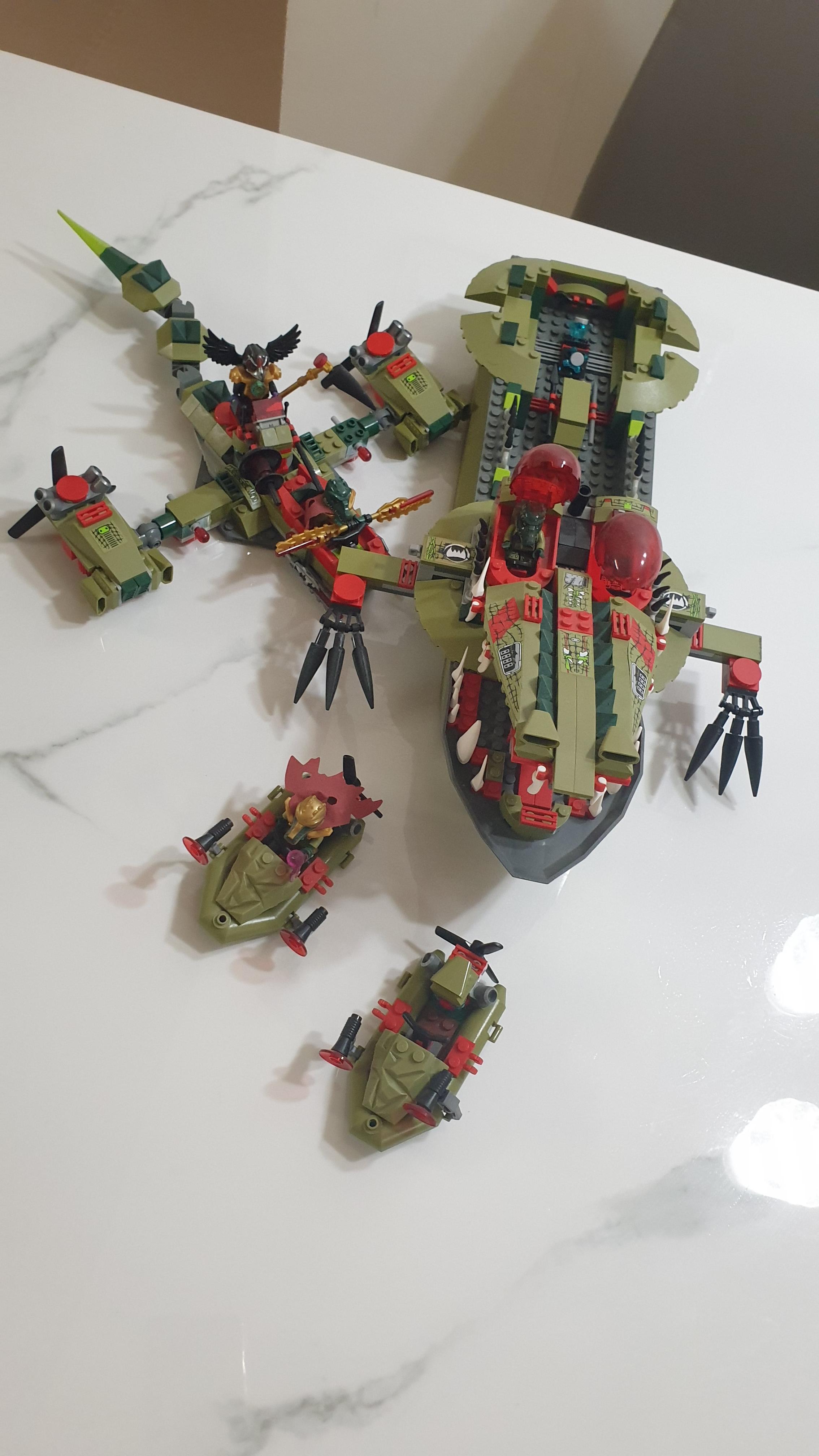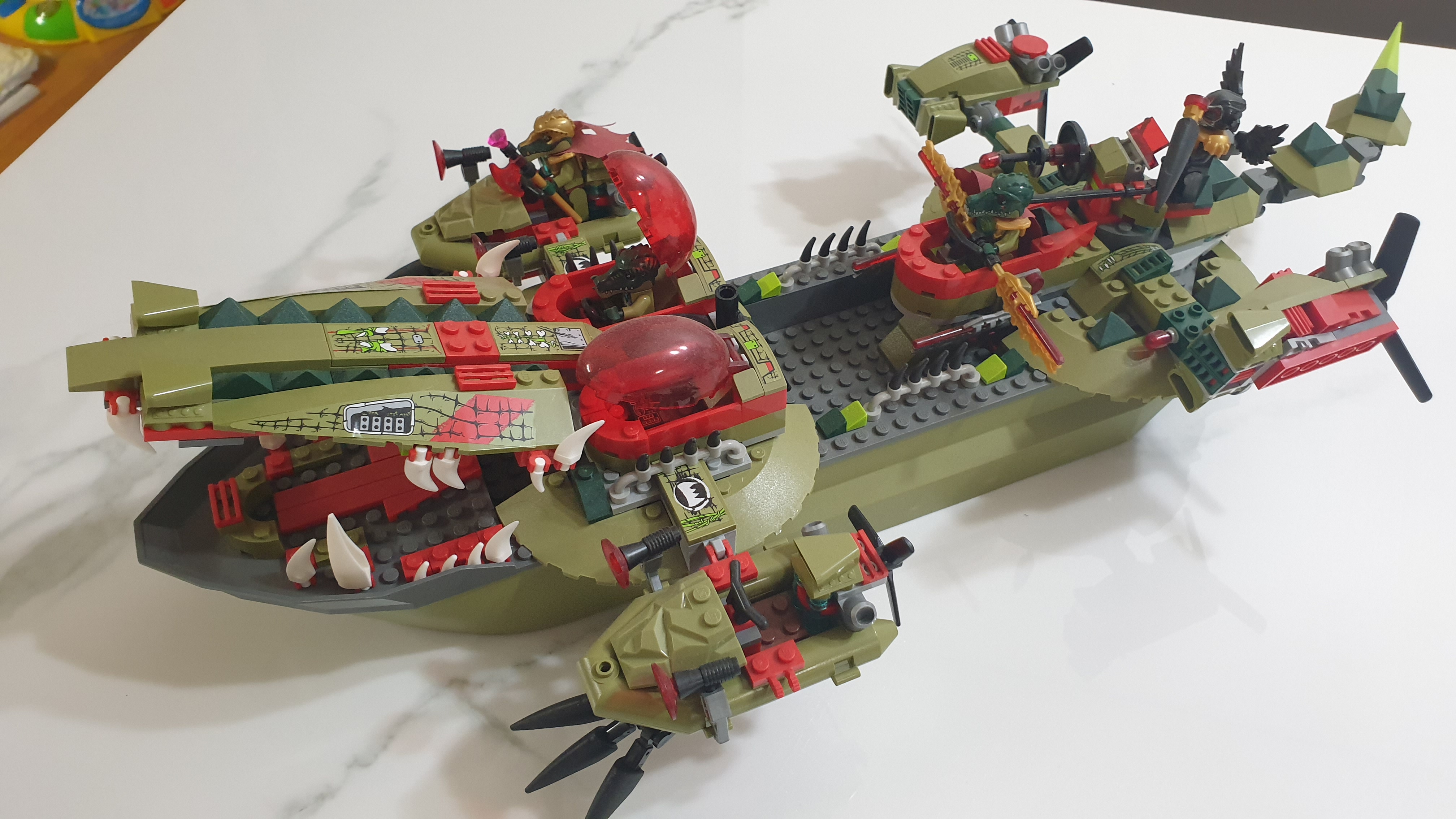 거대한 배 부품을 기반으로 만들어지는 디테일한 악어 전함입니다.