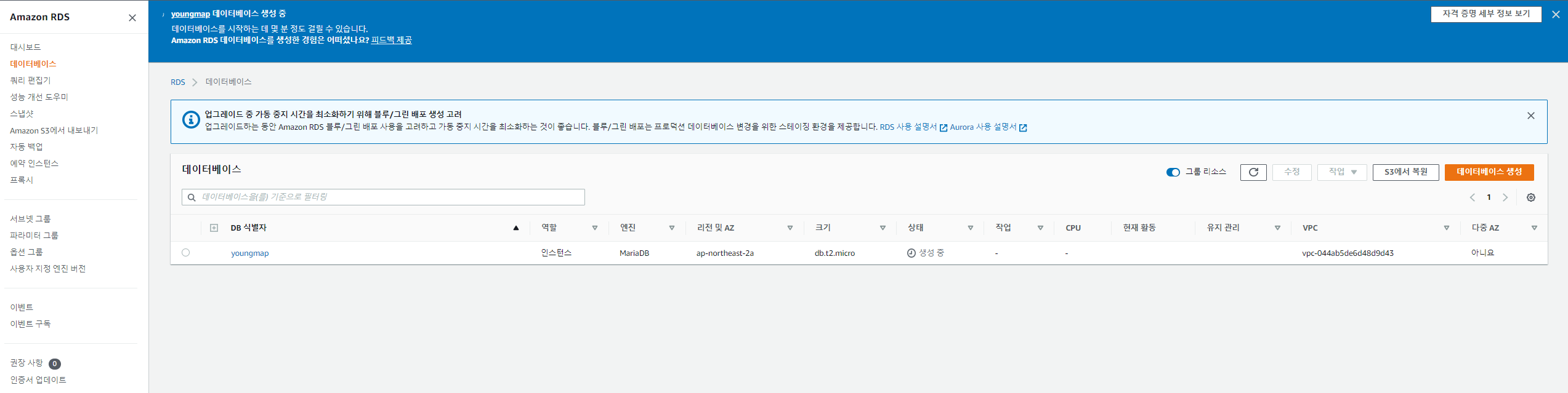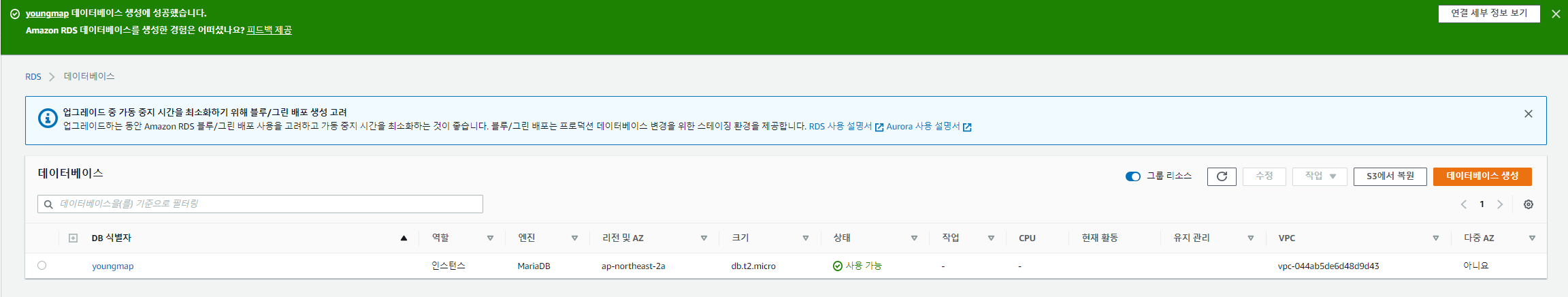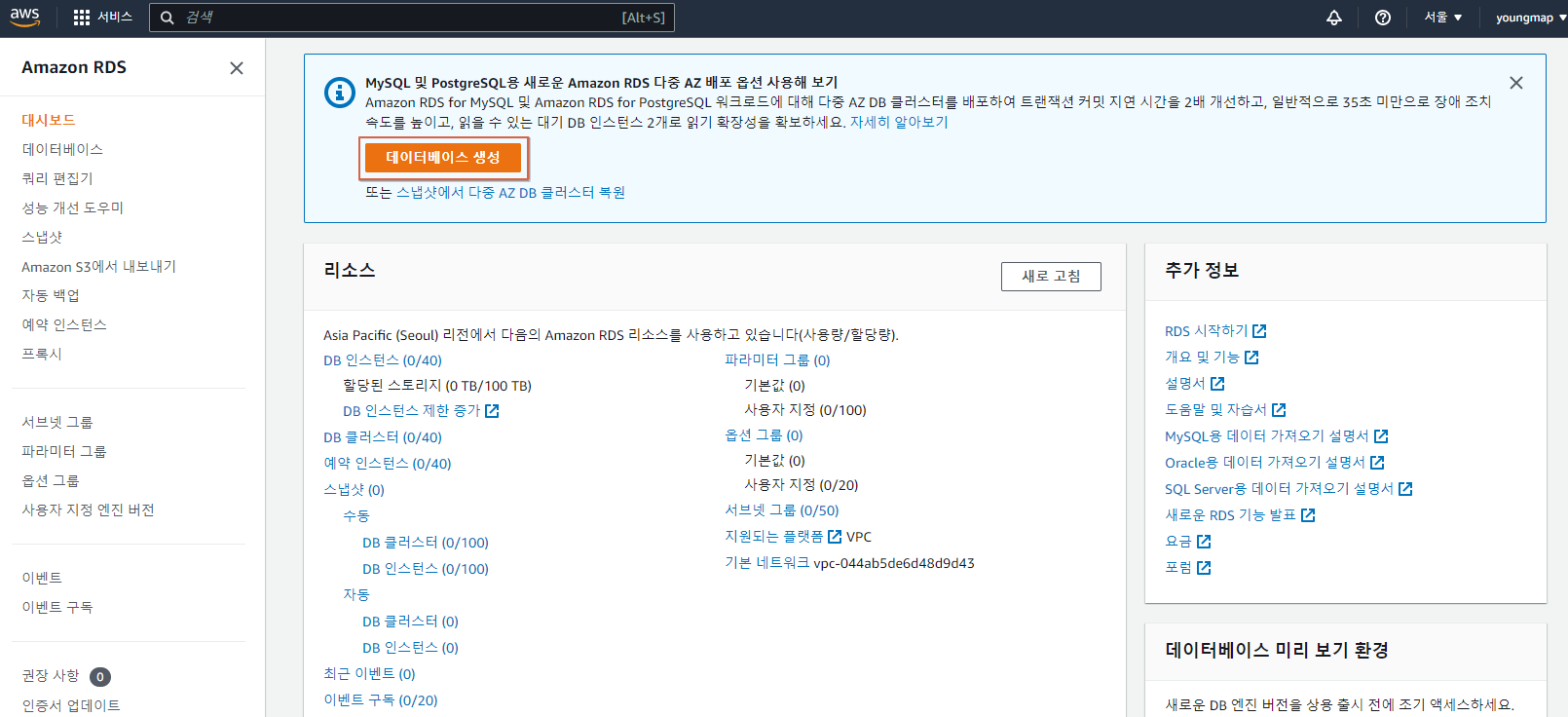 글 작성일 기준 화면 캡쳐로 RDB 생성 절차를 아래와 같이 정리했습니다.