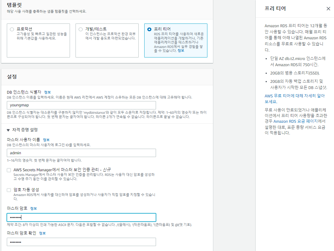 AWS 1년 프리티어 RDB 생성 방법 주의사항