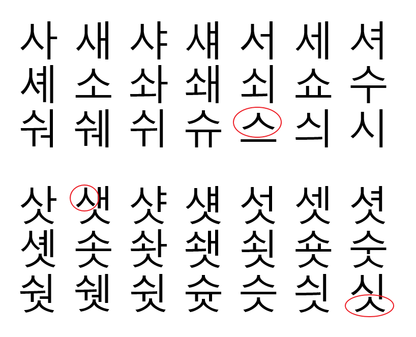맑은 고딕, 시옷 / 쌍시옷 똑같이 따라 쓰기