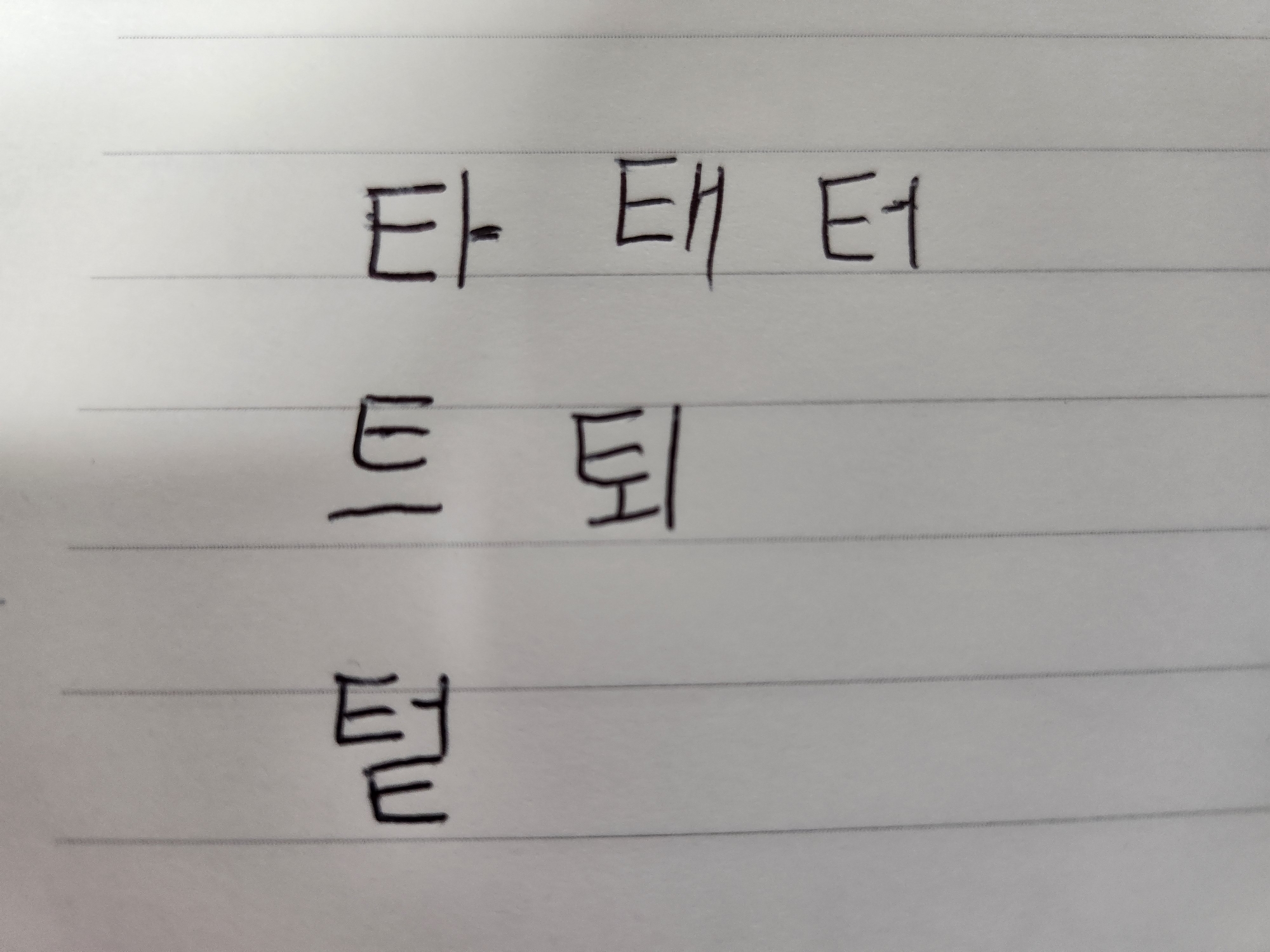 티읕을 연습해서 악필 교정을 하고 있습니다.