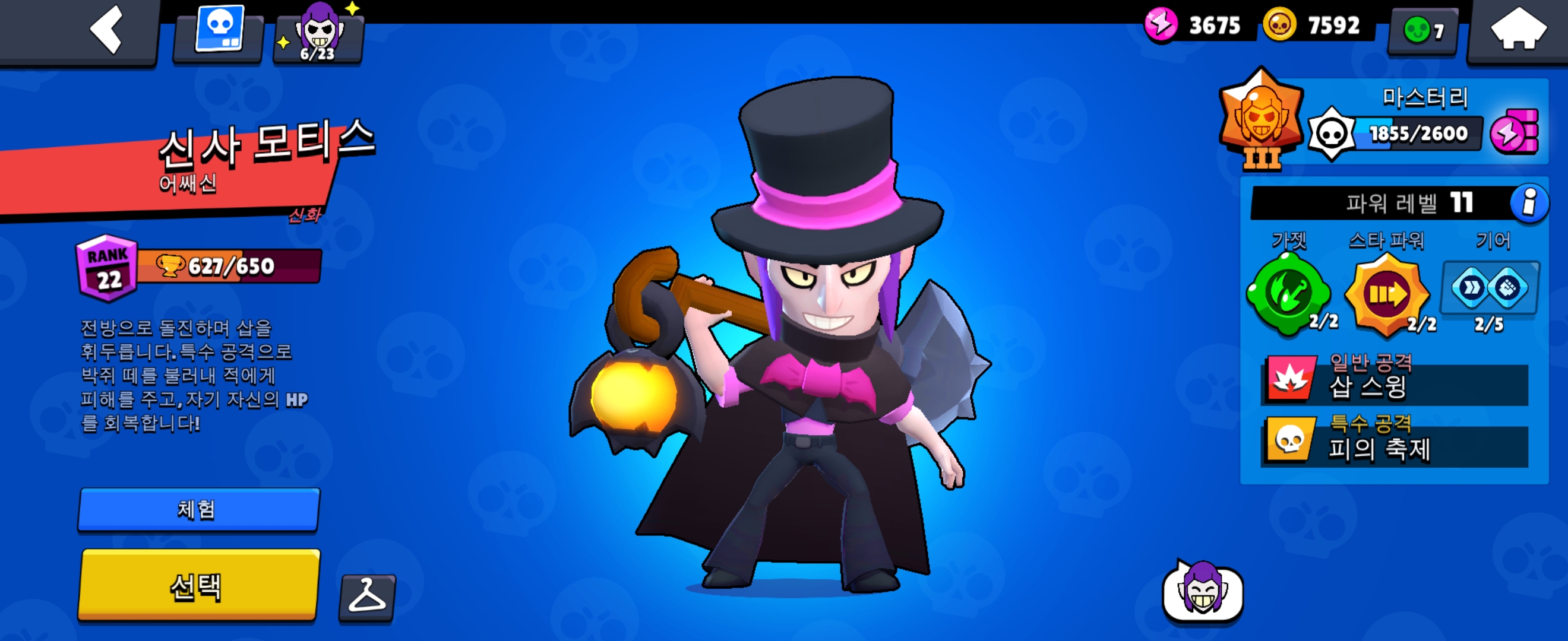 체력은 5700으로 일반 근접 브롤러에 비해 낮은 편입니다.