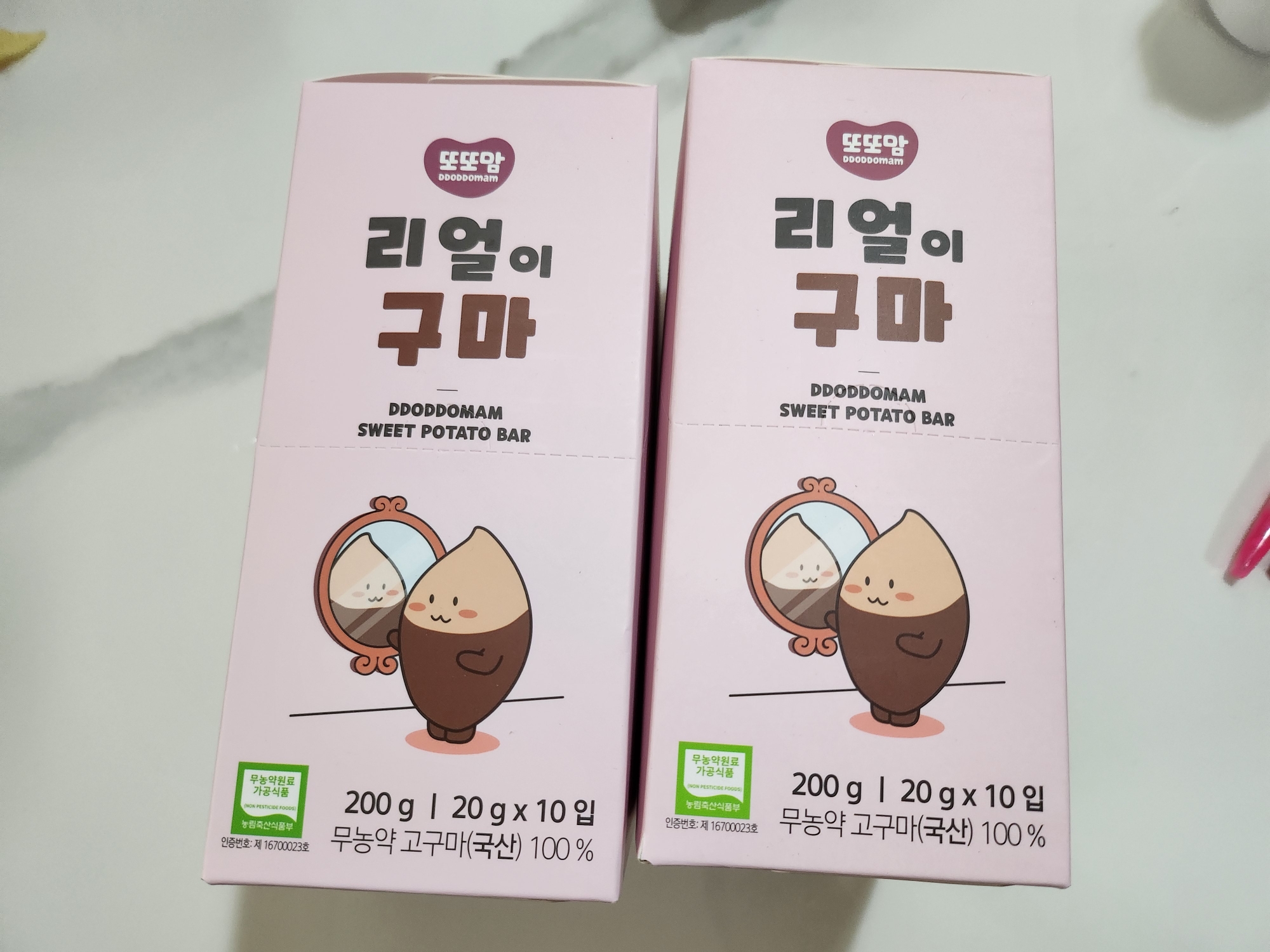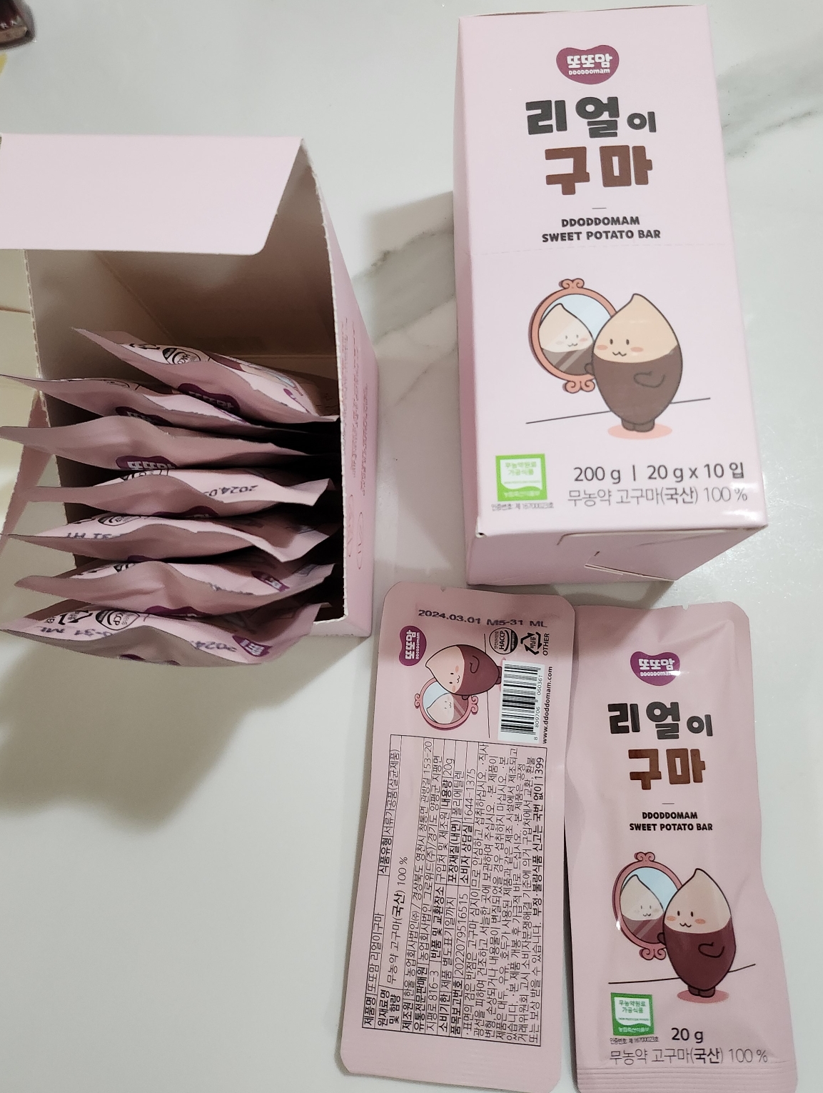 무농약 고구마가 100%인 간식입니다.