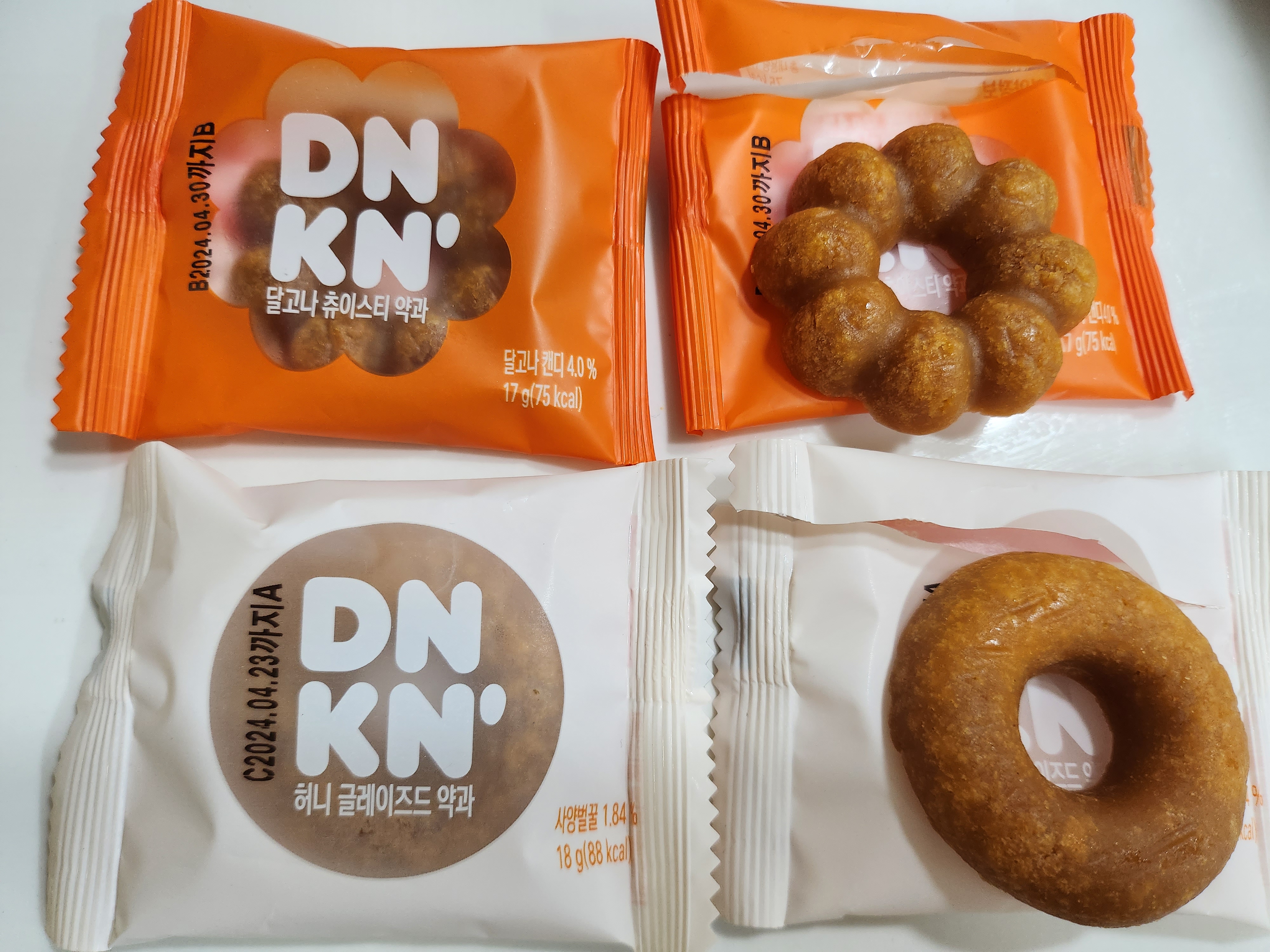 달고나 츄이스티 약과 6개, 허니 글레이즈드 약과 6개가 들어있습니다.