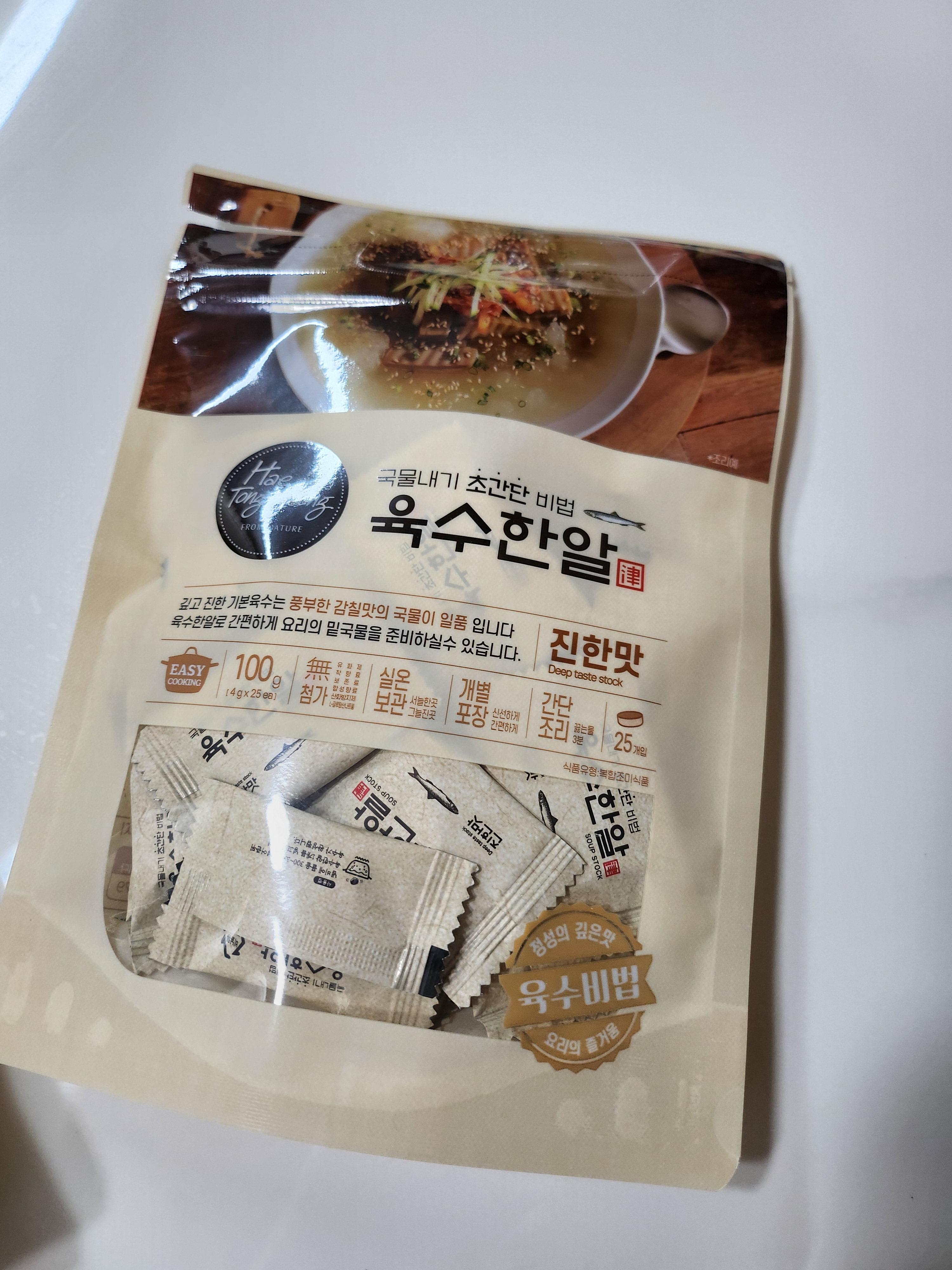 아래는 육수한알이라는 제품인데 이것이 바로 맛있는 국물을 내는 비법입니다.