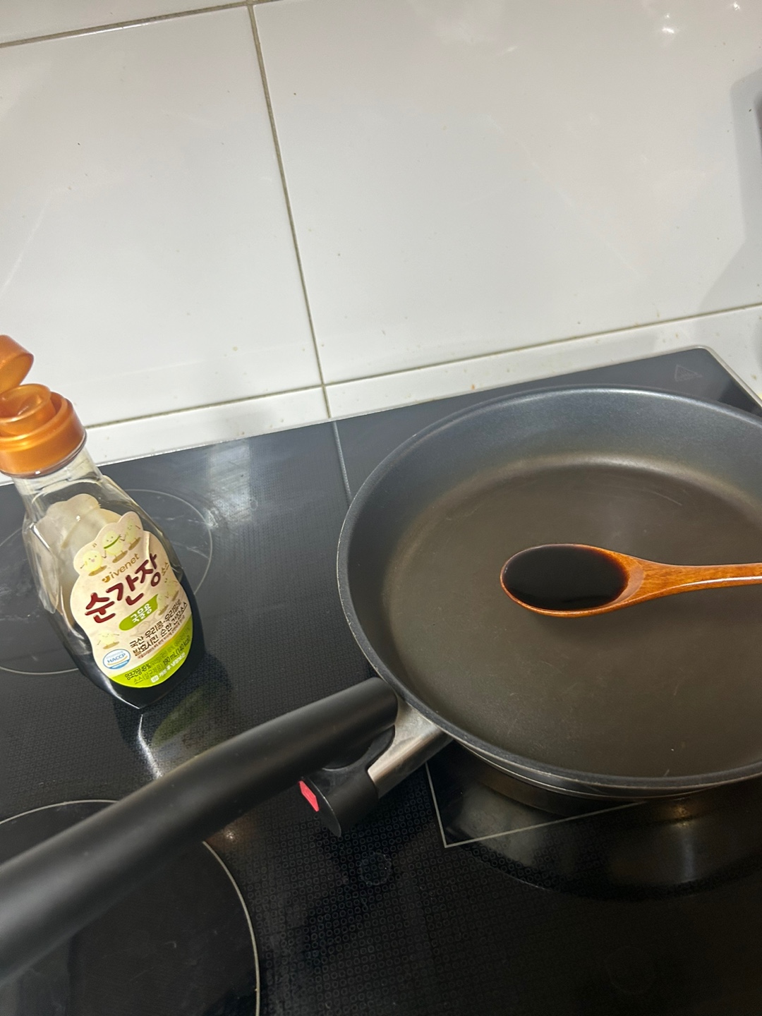 양념은 물, 간장, 설탕, 맛술, 다진 마늘, 굴소스로 만듭니다.