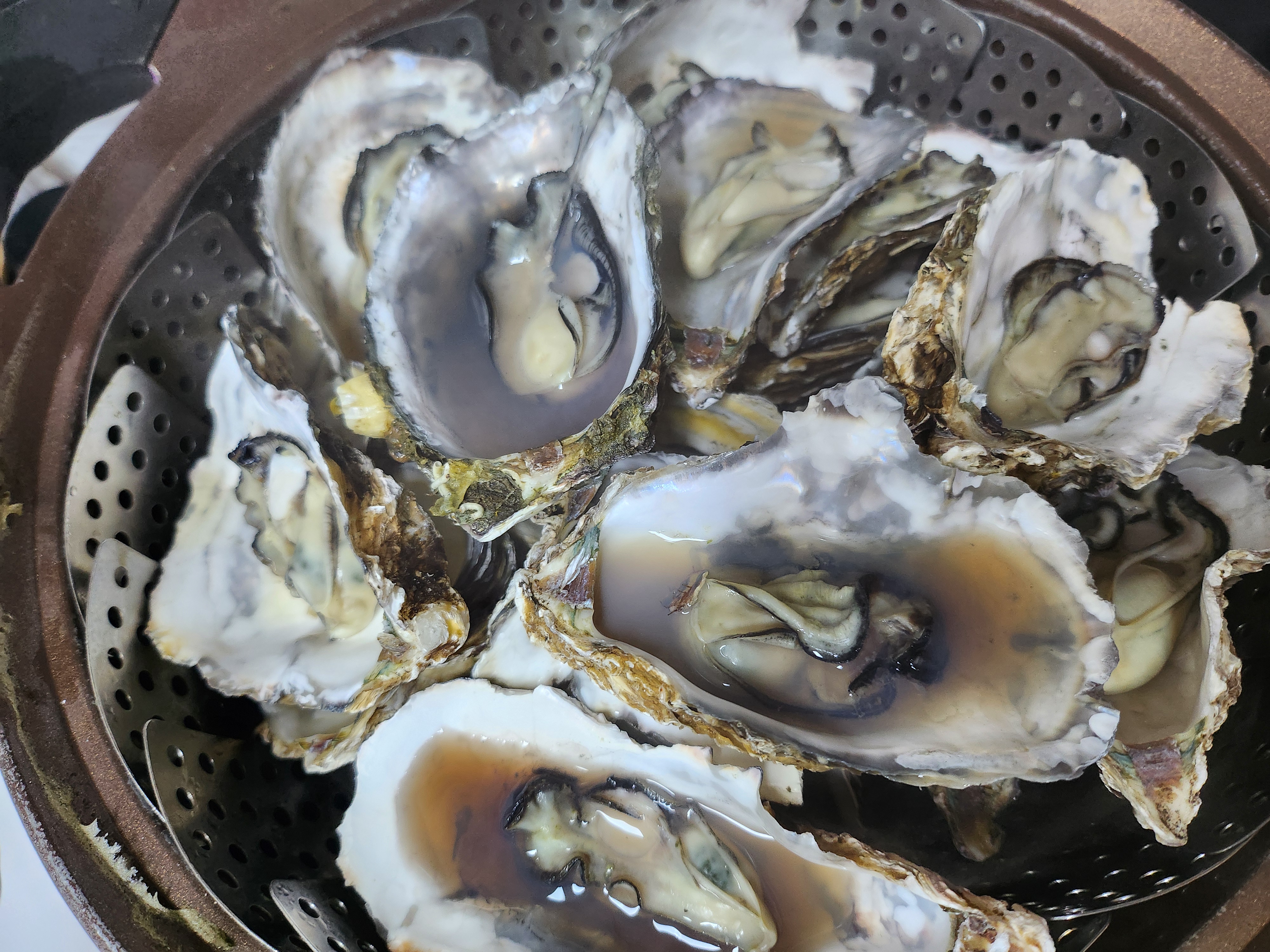 뚜껑을 닫고 찌다보면 석화 껍질에 물이 고이는데 드셔도 되고 버려도 됩니다.