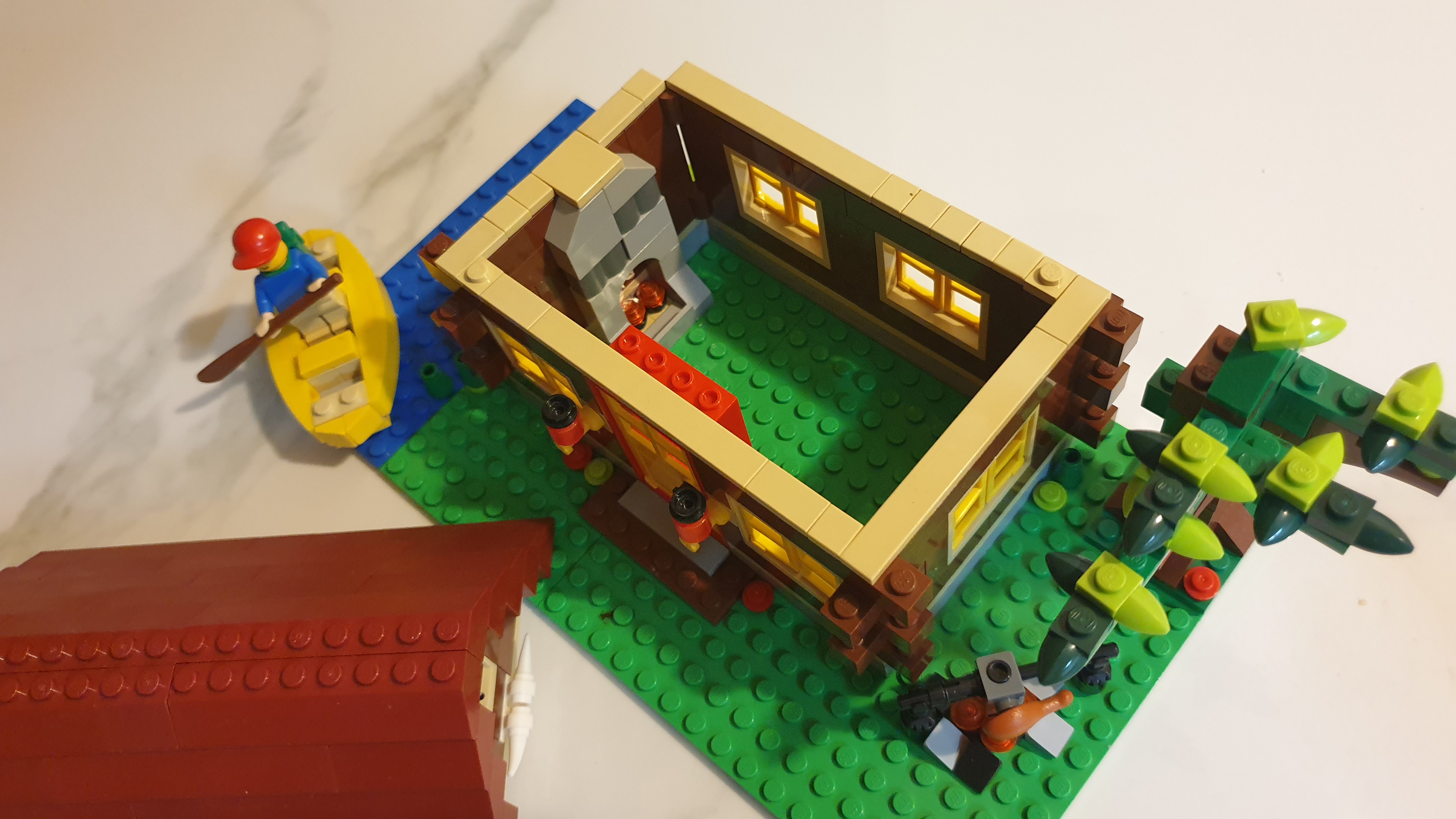 갈색 부품으로 통나무를 격자로 쌓아올린 벽이 대단합니다.